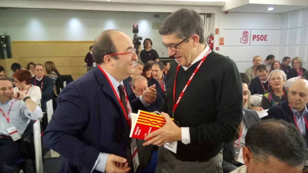 I només entrar a Ferraz, ha regalat exemplars al president de la Gestora, Javier Fernández, i als dos aspirants a les primàries que són membres del Comitè Federal: la presidenta de la Junta d’Andalusia, Susana Díaz, i l’exlehendakari Patxi López.