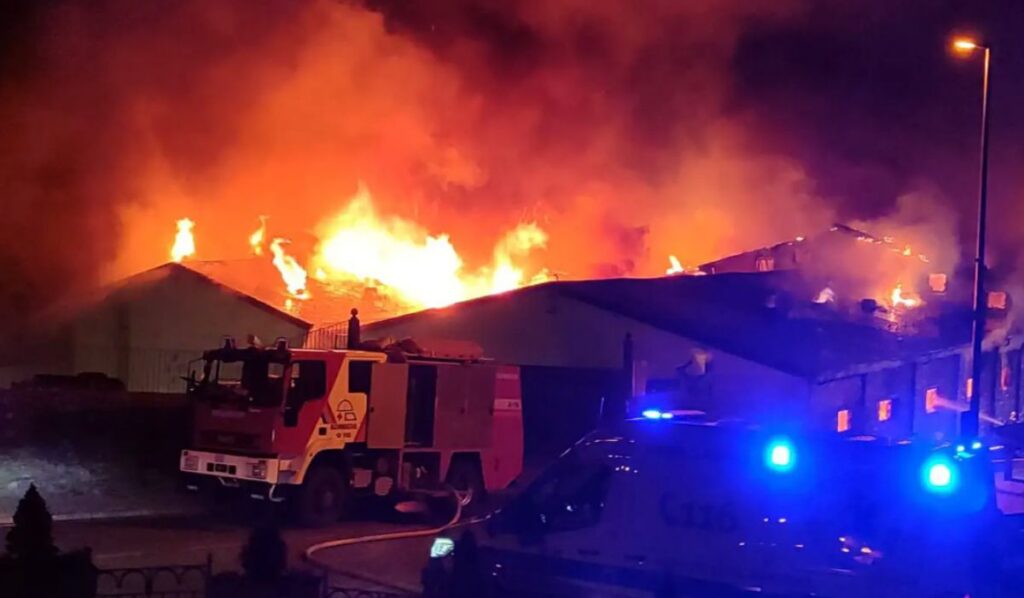 El vent fort de la nit ha afavorit l’expansió de les flames, que han cremat tota la planta. Els bombers que hi treballaven han intentat de contenir el foc en unes naus, però no ho han aconseguit i han assumit que no podrien salvar l’estructura. El director del cos de Bombers, Jordi Farré, ha informat en declaracions a RTVA que durant la nit s’havia esfondrat el sostre de la fàbrica i que l’accés a les flames havia estat impossible. L’incendi ja s’ha controlat, però els bombers encara remullen la runa i s’aixeca una gran columna de fum.