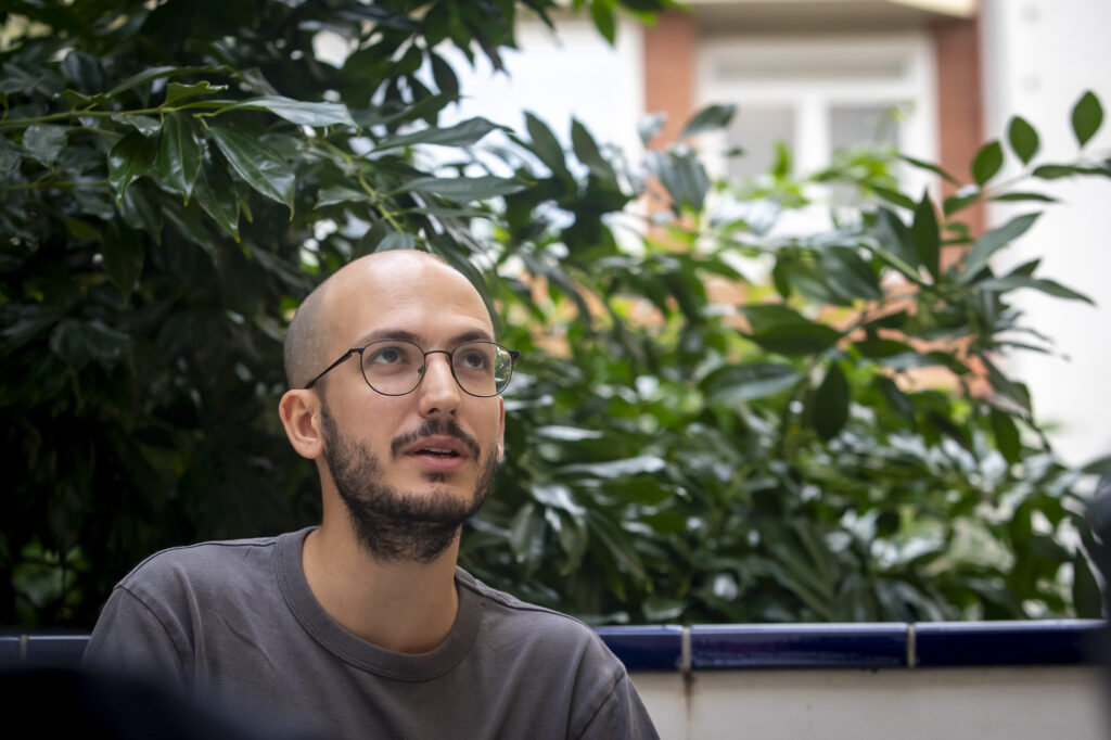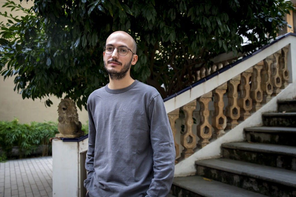 —Abans de posar-me a escriure el guió, tenia moltes idees i escenes separades, que després es van connectant i acaben agafant sentit. En aquest cas, una de les escenes més inicials era, efectivament, aquesta entre el Dídac i el noi misteriós, que no sabem qui és, que es van mirant, es van observant i van flirtejant mentre es mouen sense rumb per un espai laberíntic. M’interessava transmetre la idea del flirteig, de la seducció, i del perill de la seducció. Tot això ve del tutor que vaig tenir a la Zine Eskola de Sant Sebastià, Michel Gaztambide, el guionista de Vacas, de Julio Medem, que em va passar la pel·lícula Vestida per matar de Brian De Palma, on hi ha una escena similar boníssima dins d’un museu. Jo volia fer allò, també; diferent, però allò.