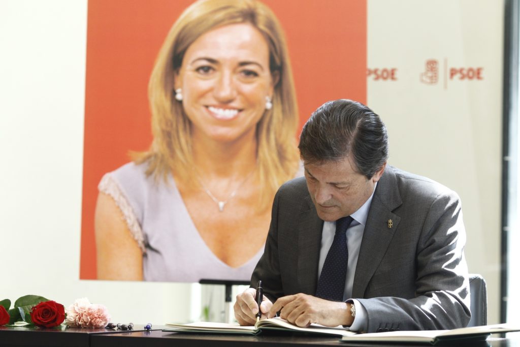 El president de la Gestora del PSOE, Javier Fernández, ha expressat el dolor del seu partit per la mort aquest diumenge de l’exministra Carme Chacón: “Un cop sec, gelat”, ha dit en visitar a primera hora de la tarda aquest dilluns la capella ardent instal·lada a la seu de la formació al carrer Ferraz de Madrid.