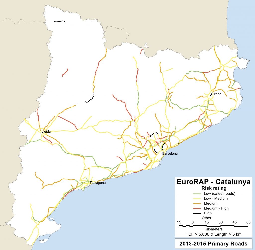 En suma, Catalunya té al voltant de 2.000 quilòmetres de xarxa viària amb alt risc de patir un accident greu o mortal, si bé aquest tipus d’accident ha disminuït un 2,47% entre 2013 i 2015, i alhora la mobilitat global per carretera ha augmentat un 1,87%.