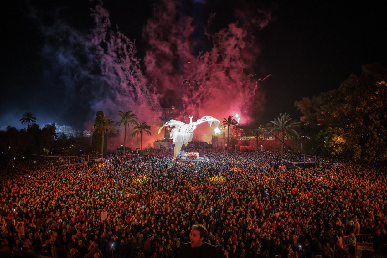 L’espectacle, amb el títol [fók], ha combinat música en directe de la Banda Simfònica Municipal, la veu de Lorena Calero, coreografia d’Álvaro Cuenca i un desplegament pirotècnic amb el foc per protagonista. La responsable dels focs, María José Lora (Pirotecnia Caballer FX Global Foc), s’ha convertit en la primera dona a disparar els focs artificials de la Crida.