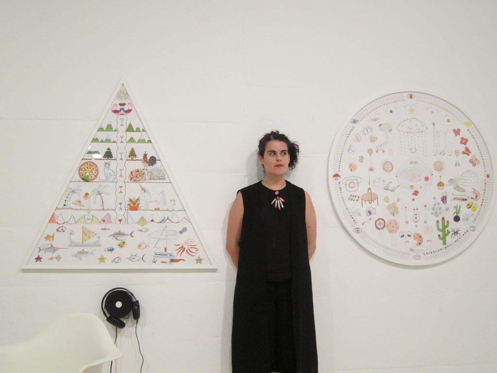A ‘Iguals’ les coses amb les mateixes formes s’intercanvien, i així els planetes galàctics són substituïts per fruites cítriques i els núvols per ovelles, ha explicat l’artista, originària de Sabadell i que també treballa a Berlín.