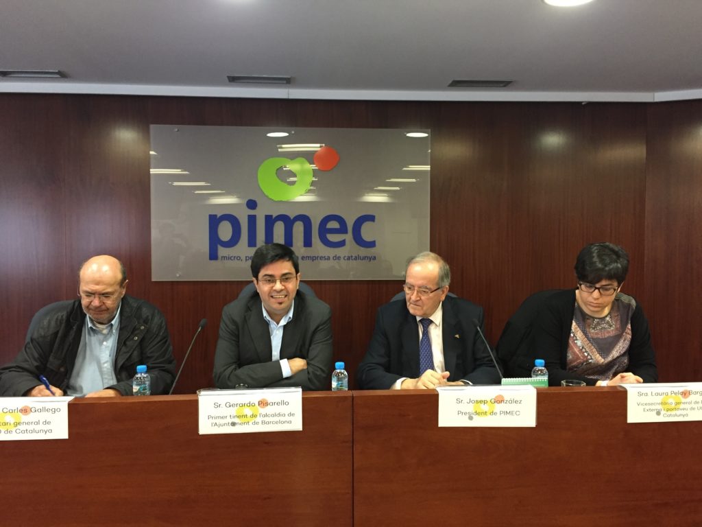 En la presentació de l’acord, celebrat a la seu de la patronal, han participat el primer tinent d’alcalde de Barcelona, Gerardo Pisarello; el president de Pimec, Josep González; el secretari general de CCOO de Catalunya, Joan Carles Gallego, i la sotssecretària general i portaveu de la UGT de Catalunya, Laura Pelay, que han lamentat que a Espanya la contractació pública prima les grans corporacions.