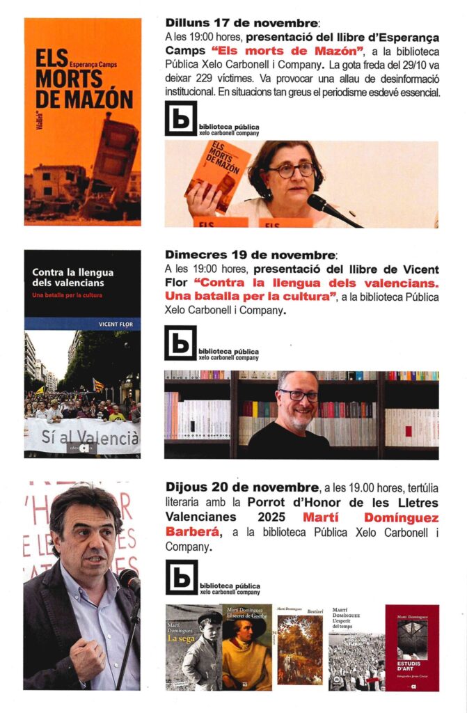 L’Ajuntament de Silla (Horta Sud), amb majoria absoluta del PSOE, ha impedit la presentació del llibre Els morts de Mazón, de la periodista i cap de redacció de VilaWeb, Esperança Camps, a la biblioteca Xelo Carbonell. Aquesta presentació formava part dels actes de la 35a Setmana de les Lletres Valencianes, on també participen Vicent Flor, amb el seu llibre Contra la llengua dels valencians, i Martí Domínguez amb la novel·la Ingrata pàtria.