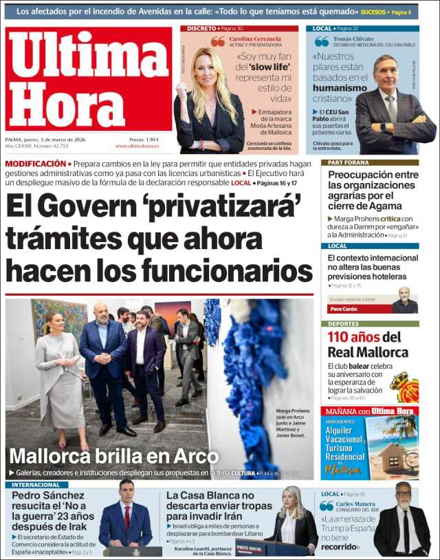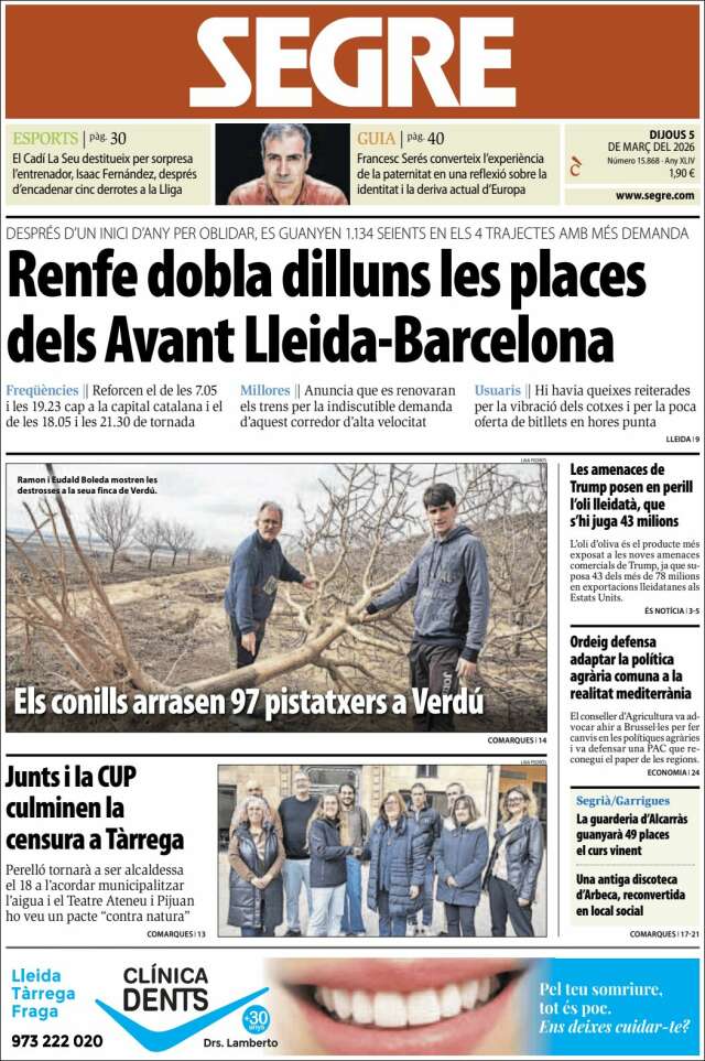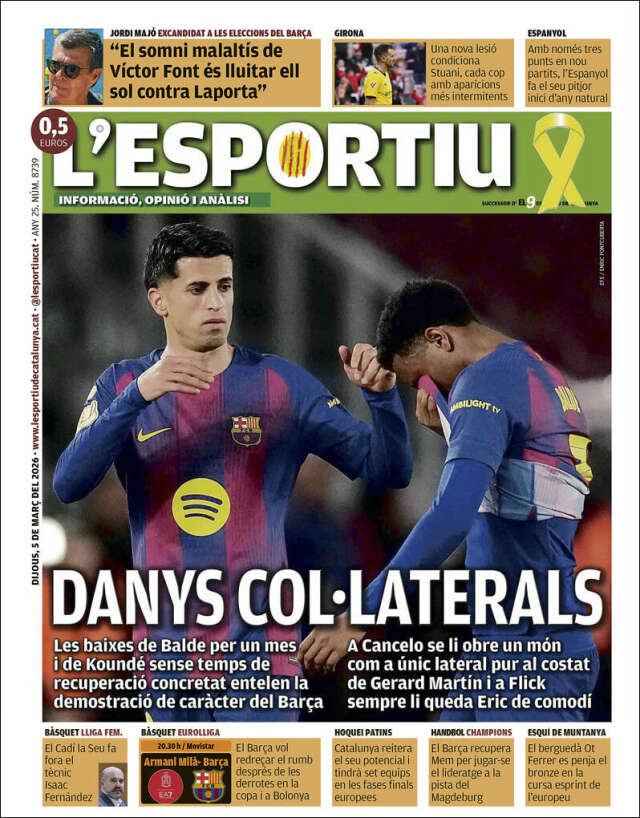 Les portades del dijous 5 de març de 2026