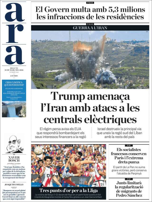 Les portades del dilluns 23 de març de 2026
