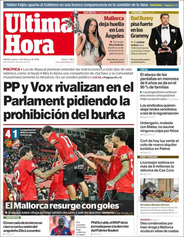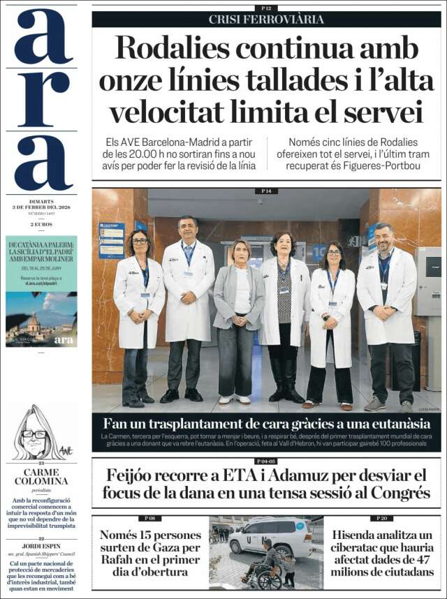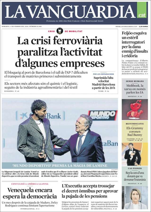 Les portades del dimarts 3 de febrer de 2026