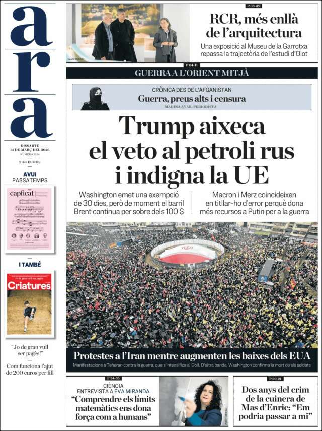 Les portades del dissabte 14 de març de 2026