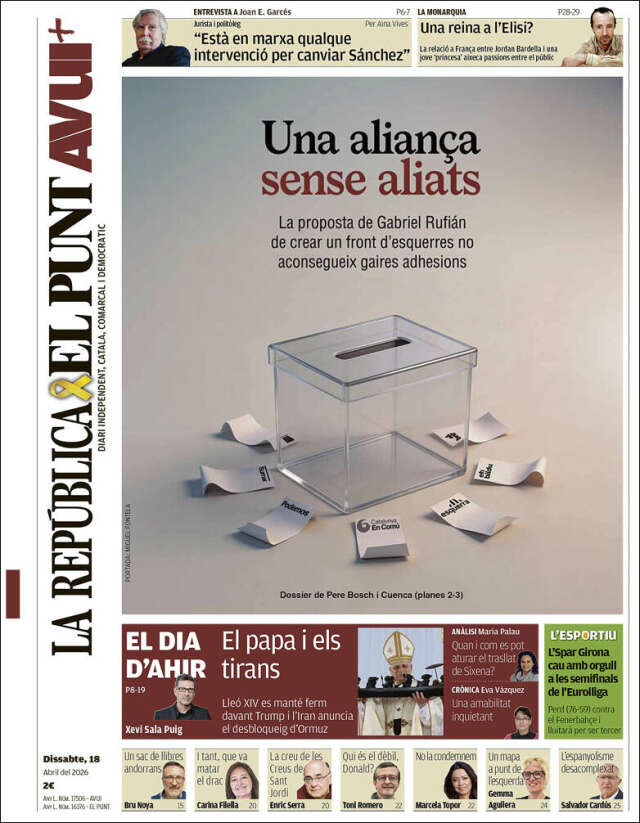 Les portades del dissabte 18 de abril de 2026