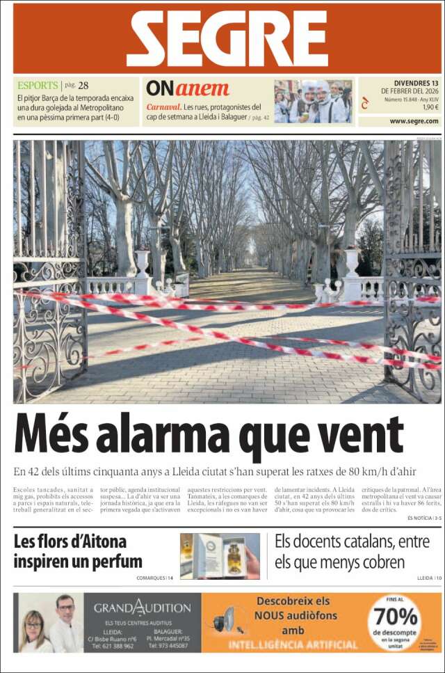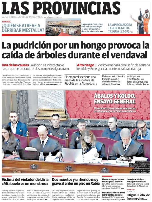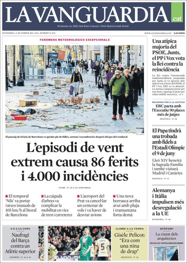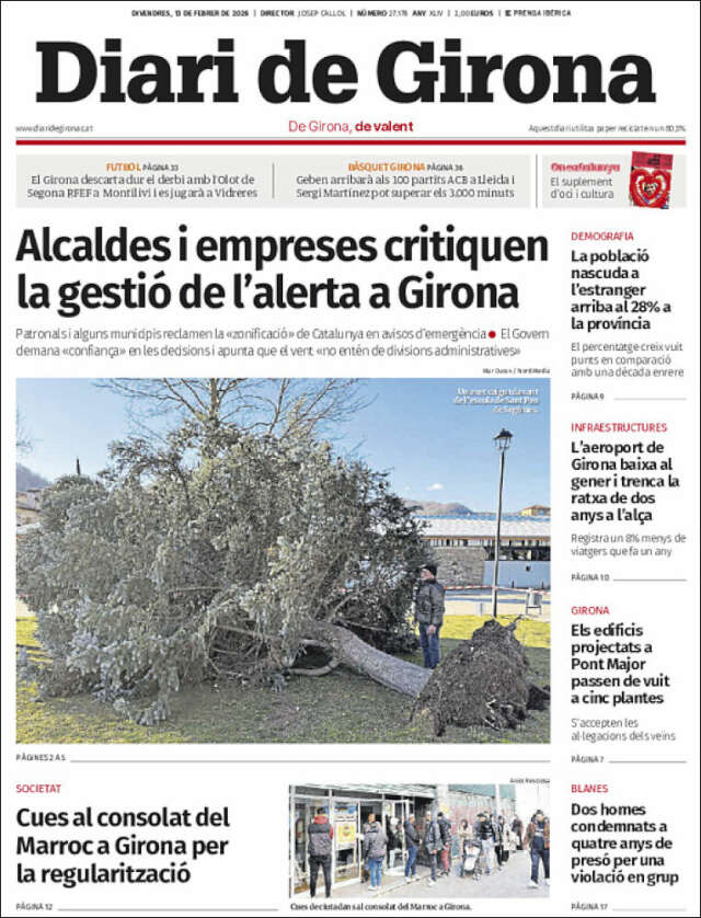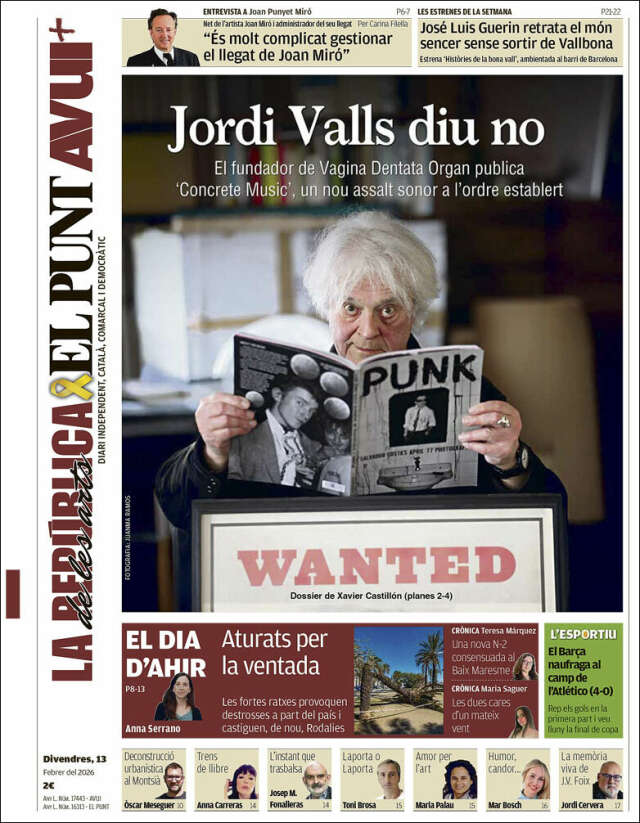 Les portades del divendres 13 de febrer de 2026