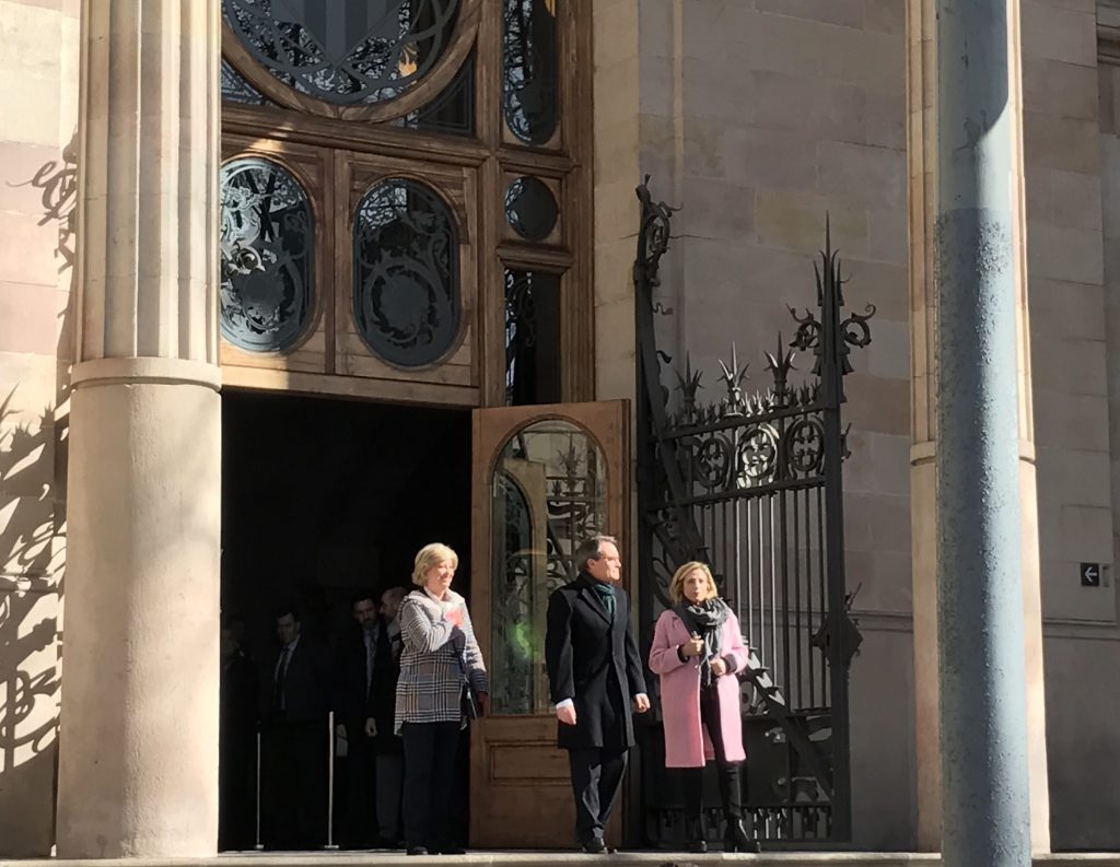 En sortir de l’edifici després de prop de tres hores al banc dels acusats, s’ha adreçat als concentrats i, en nom dels tres, Mas els ha dedicat unes breus paraules: “Hem sentit en els més profund del nostre cor, ànima i pensament que no estàvem sols. Gràcies per tant”.