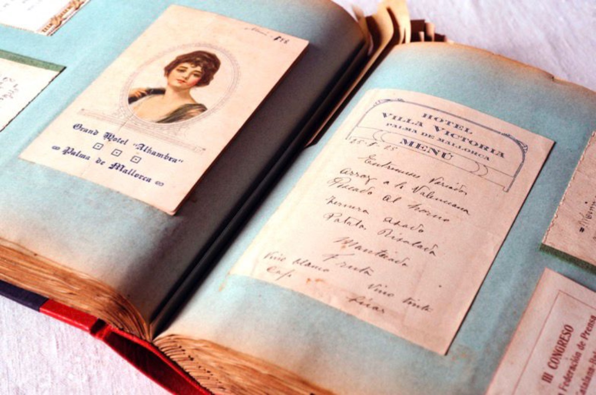 —Quan vaig comprar aquest àlbum, per ventura fa una vintena d’anys, me va hipnotitzar, va actuar com un imant. Perquè el vaig comprar una mica a la impensada, perquè no podia acabar de veure tota la dimensió que tenia. Això ho vaig veure i encara ho veig a través de tots aquests anys de mirar i remirar de moltes maneres l’àlbum. Perquè, és clar, no és una col·lecció de menús impresos, sinó que aquest periodista, que feia la feina a consciència, anotava a cada menú quin acte es feia: un homenatge a no sé qui, una reunió de periodistes, una reunió d’amics… I, a més, feia que els signessin els assistents. Això dóna un valor afegit a l’àlbum. I vaig començar a veure que aquell àlbum, que comença el 1903 amb la inauguració del Gran Hotel de Palma, el primer gran hotel de luxe de l’illa, i s’acaba a la República, el 1931, perquè ell es va morir el 1932, agafa tres dècades de vida de Palma i de l’illa. Aquest periodisme cultural ben fet d’Enric Vives ens retrata tots plegats. Venim d’aquí, de qualque manera. I, quan ho vaig començar a veure, me va entusiasmar. Perquè no eren només els menús, sinó també l’art a la taula, la convivència, la comensalitat, el fet de compartir, què implica seure a taula, què comporta tot això…