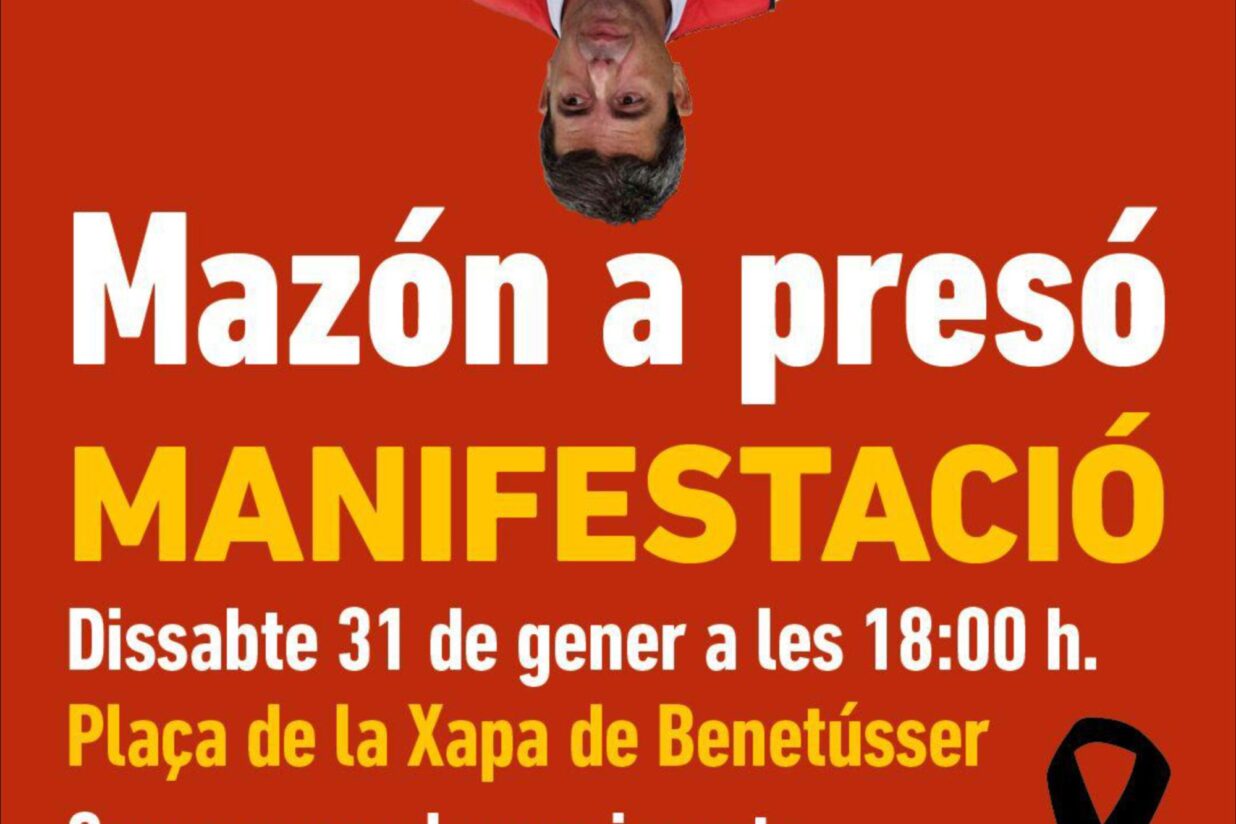 Nou clam per a exigir l’empresonament de l’ex-president de la Generalitat, Carlos Mazón, pel seu paper durant la gota freda del 29 d’octubre de 2024. Els moviments socials del País Valencià han convocat una manifestació avui a les 18.00 a la plaça de la Xapa de Benetússer, que arribarà a la plaça del País Valencià d’Alfafar, passant per Sedaví. En concret, la convoquen dues-centes entitats cíviques i socials, sindicats, les associacions de víctimes, l’Acord Social Valencià i els comitès d’emergència i reconstrucció locals.