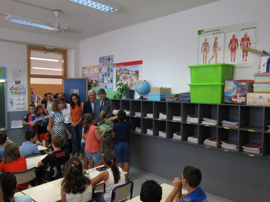 Tots ells han visitat dues aules d’este centre, el més gran de la capital amb 825 alumnes i 33 unitats, i han assistit a l’intercanvi dels lots de llibres entre els estudiants de 3r i 4t curs de primària en el marc del programa XarxaLlibres.