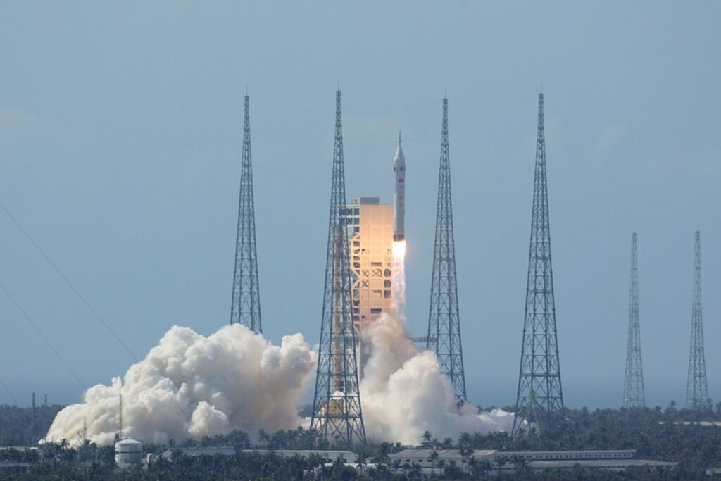 De la mateixa manera que els EUA, el sistema xinès ja es troba en desenvolupament: el coet Llarga Marxa 10, la nau tripulada Mengzhou i el mòdul lunar Lanyue, concebuts per operar amb dos llançaments separats que s’acoblarien en òrbita lunar abans del descens. Tot i que el sistema encara no ha volat en conjunt, la Xina ja ha fet assaigs de motors, proves de reentrada i simulacions de missió. A més, l’experiència acumulada amb l’estació Tiangong ha servit per a validar operacions clau com l’acoblament i les estades prolongades en òrbita.