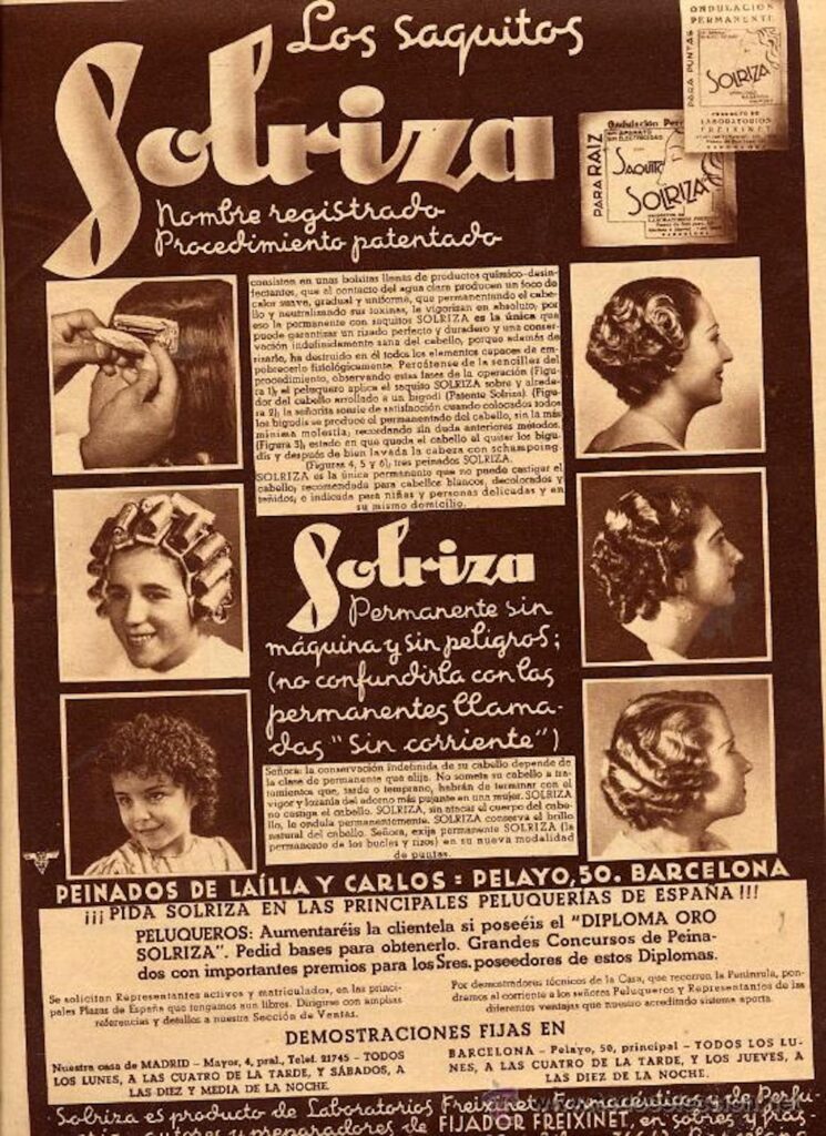 Paral·lelament a aquest panorama, la gent del carrer resistia com podia i així que trobava una escletxa en el mur de sordidesa que ofegava la vida quotidiana, recorria a la ironia. Ara mateix em vénen al cap un parell d’exemples. El primer va ser la moda del pentinat “Arriba España”, que consistia a agafar el serrell, pentinar-lo cap a la part superior de la closca i deixar-lo fixat i ondulat gràcies al suport del Solriza, un producte en format d’escates que es dissolien amb aigua i que va ser la causa principal que entre la població femenina proliferés una espectacular gamma de tupès precursors dels que anys a venir exhibirien Elvis Presley i els seus succedanis.