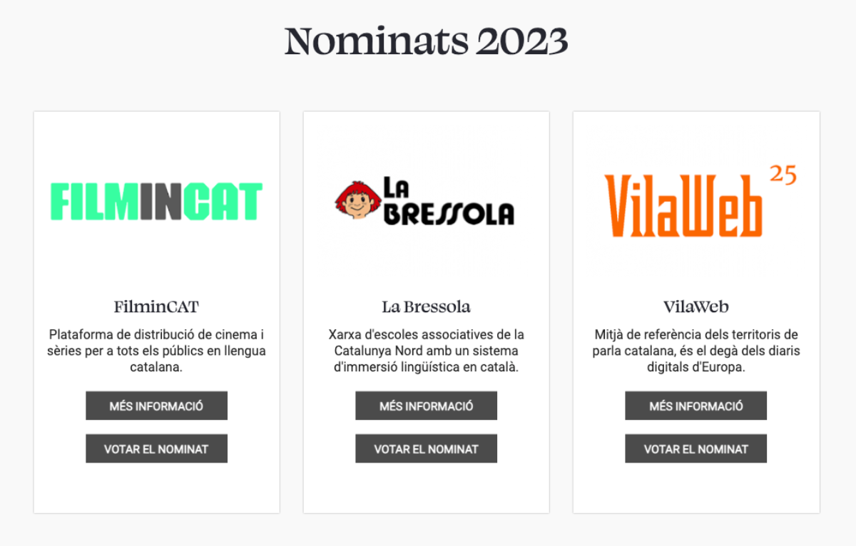 Els guardons reconeixen persones o entitats que s'han destacat en la defensa o la promoció del català · El guanyador es decidirà en una votació en línia