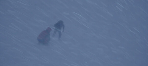 Aquest fenomen meteorològic es produeix quan fortes ratxes de vent alcen la neu, fet que redueix la visibilitat i fa caure en picat la temperatura