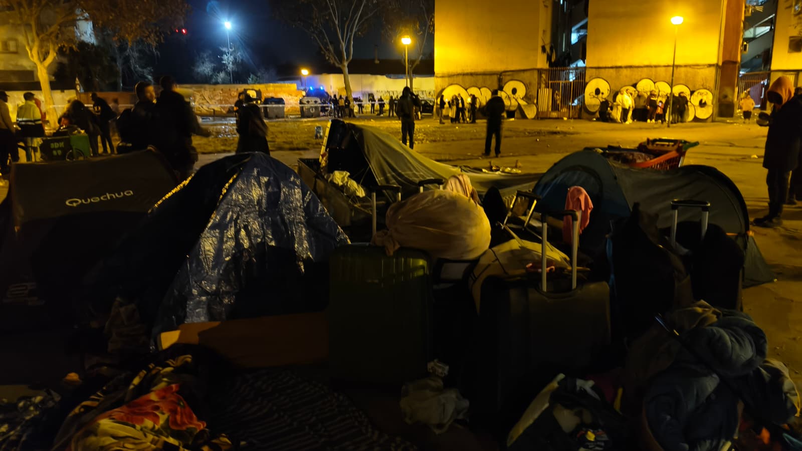 Han improvisat una acampada a la plaça del davant perquè no tenien cap alternativa per a passar la nit