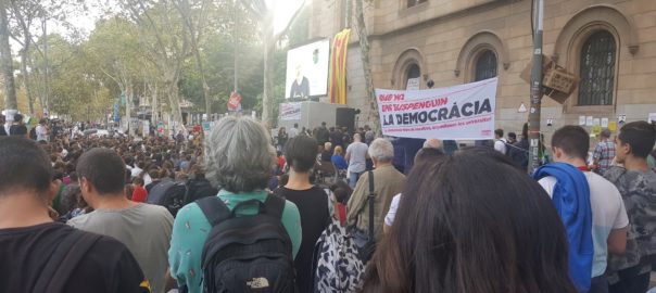 Un grup d'estudiants de Secundària ha tallat el matí d'aquest dimecres l'avinguda Meridiana i l'avinguda Diagonal de Barcelona en suport al referèndum d'independència de l'1 d'octubre.