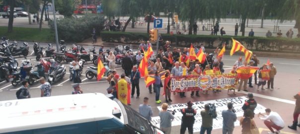 Unes 30 persones es concentren aquest dimecres al migdia davant la redacció de Catalunya Ràdio contra el referèndum de l'1 d'octubre i contra la periodista Mònica Terribas, a la qual han adreçat càntics i insults.