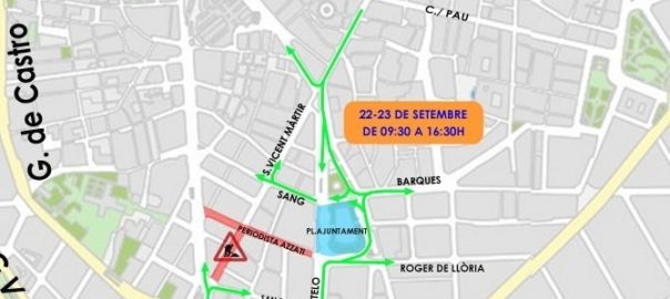 El Centre de Gestió de Trànsit ha informat que el divendres i el dissabte, a partir de les 17.00 hores, es procedirà al tall complet de la circulació de la plaça de l'Ajuntament de València amb motiu dels concerts previstos amb motiu de la Setmana de la Mobilitat mentre que el diumenge el tall a la circulació serà l'habitual de cada últim diumenge de mes.