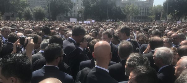 Magistrats, fiscals i funcionaris que es trobaven de guàrdia aquest divendres al Tribunal Suprem, el Tribunal Constitucional, l'Audiència Nacional, la Fiscalia General de l'Estat i el Consell General del Poder Judicial (CGPJ) han abandonat els seus llocs de treball a les 12:00 per concentrar-se a les portes de les diferents seus judicials i guardar un minut de silenci per les víctimes dels atemptats terroristes perpetrats a Barcelona i Cambrils.