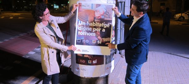 Ahir al vespre, va fer el primer acte simbòlic amb una enganxada de cartells a prop de la seu del partit amb Marta Rovira i Sergi Sabrià