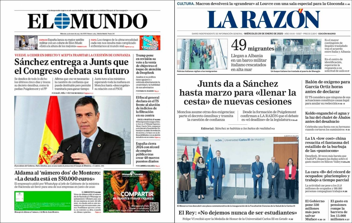 La premsa espanyola conservadora és molt dura amb les cessions de Sánchez en l'acord amb Junts