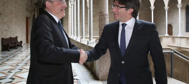 El president català, Carles Puigdemont, i el president de la Comunitat Valenciana, Ximo Puig, s'han reunit aquest dimecres al Palau de la Generalitat.