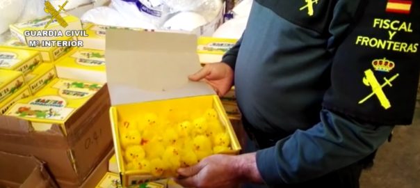 La Guàrdia Civil ha intervingut 15.000 pollets decoratius de mones de Pasqua procedents del contraban i que podien suposar un risc per als nens per la seva mala qualitat.