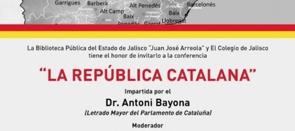 El lletrat major del Parlament, Antoni Bayona, imparteix aquest divendres una conferència sota el títol 'La República catalana' a la Biblioteca Pública de l'Estat de Jalisco Juan José Arreola de la Universitat de Guadalajara (Mèxic).