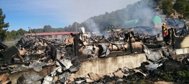 Uns 9.000 porcs han mort calcinats en l'incendi declarat en la matinada d'este divendres en la granja de la pedania de Jaraguas, a la localitat valenciana de Venta del Moro, segons han informat fonts del Consorci Provincial de Bombers.
