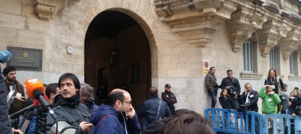 Un centenar de periodistes esperen l'arribada d'Iñaki Urdangarin i Diego Torres, els quals han de comparèixer a l'Audiència Provincial de Palma per la vista de mesures cautelars que ha sol·licitat el Ministeri Fiscal.