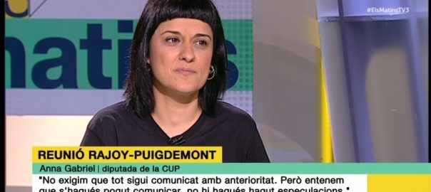 La diputada de la CUP Anna Gabriel ha assegurat que li "inquieta" que el Govern no informés el seu partit de la trobada que van mantenir el gener el president del Govern espanyol, Mariano Rajoy, i el català, Carles Puigdemont.