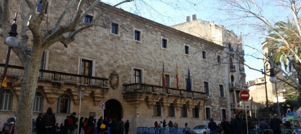 Mig centenar de periodistes i càmeres esperen la notificació de la sentència del cas Nóos davant les portes de l'Audiència Provincial de Palma.