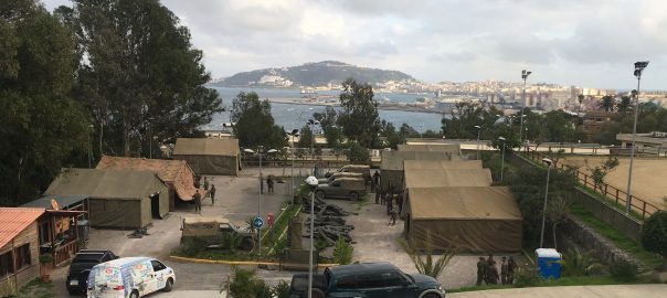 La Delegació del Govern espanyol, l'Executiu autonòmic i la Comandància General de Ceuta han coordinat durant al matí d'aquest dilluns la instal·lació de tendes i una cuina de campanya militars a l'aparcament del Centro Ecuestre municipal per albergar part dels 356 migrants indocumentats que a les 3.30 hores han accedit en grup a la ciutat autònoma obrint "amb maces i cisalles" diverses portes del doble clos perimetral fronterer.