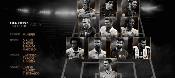 El Reial Madrid, amb cinc jugadors, i el Barcelona, amb quatre -cinc si s'inclou Dani Alves, que l'estiu va marxar al Juventus-, copen la millor alineació mundial FIFA FIFPro, escollida amb els vots de 26.500 futbolistes de tot el planeta.