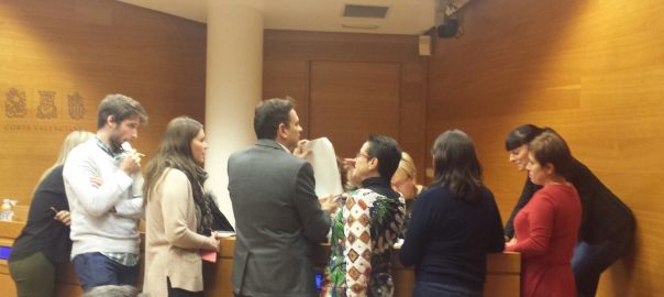 Desenes de pares i alumnes del col·legi d'educació infantil i primària (CEIP) 103 de València --on hui s'ha tornat a suspendre l'activitat a causa de a les fortes pluges registrades a la capital durant el cap de setmana-- han protestat a les portes de la Conselleria d'Educació i han simulat donar classe al seu interior amb la finalitat de reivindicar la construcció del nou centre i unes instal·lacions "dignes".