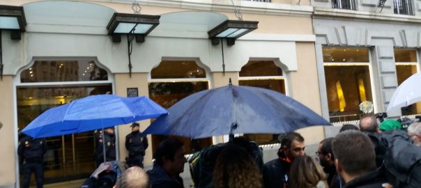 La ministra de Defensa i secretària general del PP, María Dolores de Cospedal, s'ha desplaçat, acompanyada del seu equip, a l'hotel on ha mort l'exalcaldessa de València i senadora Rita Barberá, situat davant del Congrés dels Diputats que aquest dimecres acull el ple de control al Govern.