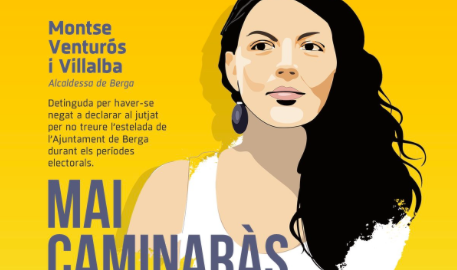 'Mai caminarà sola: en defensa de la llibertat', es pot llegir al cartell on es veu una imatge de la batllessa