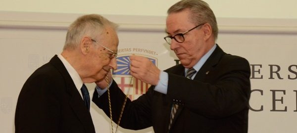 La Universitat de Barcelona (UB) ha lliurat aquest divendres la medalla d'or de la institució a l'historiador i monjo de Montserrat Hilari Raguer, en una cerimònia en la qual ha rememorat els seus anys com a estudiant i les seves activitats antifranquistes.