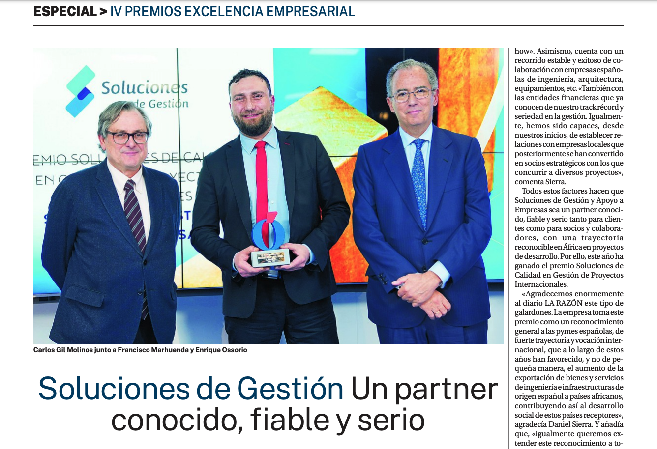 Soluciones de Gestión va ser guardonada en els premis Excel·lència Empresarial 2023, que atorga el diari La Razón