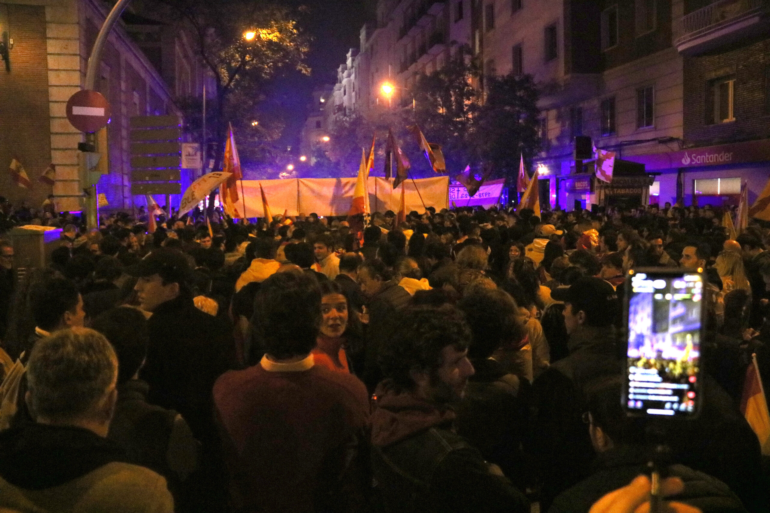 Crònica de les manifestacions de la ultradreta davant el congrés espanyol, minoritàries, que afavoreixen un Pedro Sánchez que guanya a Espanya donant per perduda Madrid