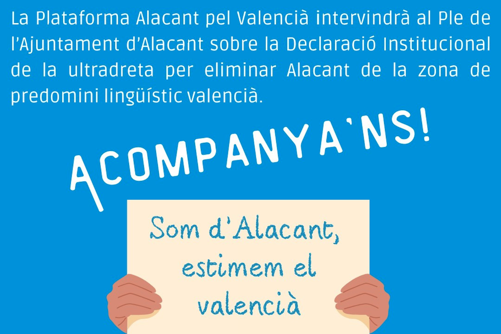 La Plataforma Alacant pel Valencià intervé en el ple municipal per denunciar l'exclusió d'Alacant de la zona de predomini lingüístic del català