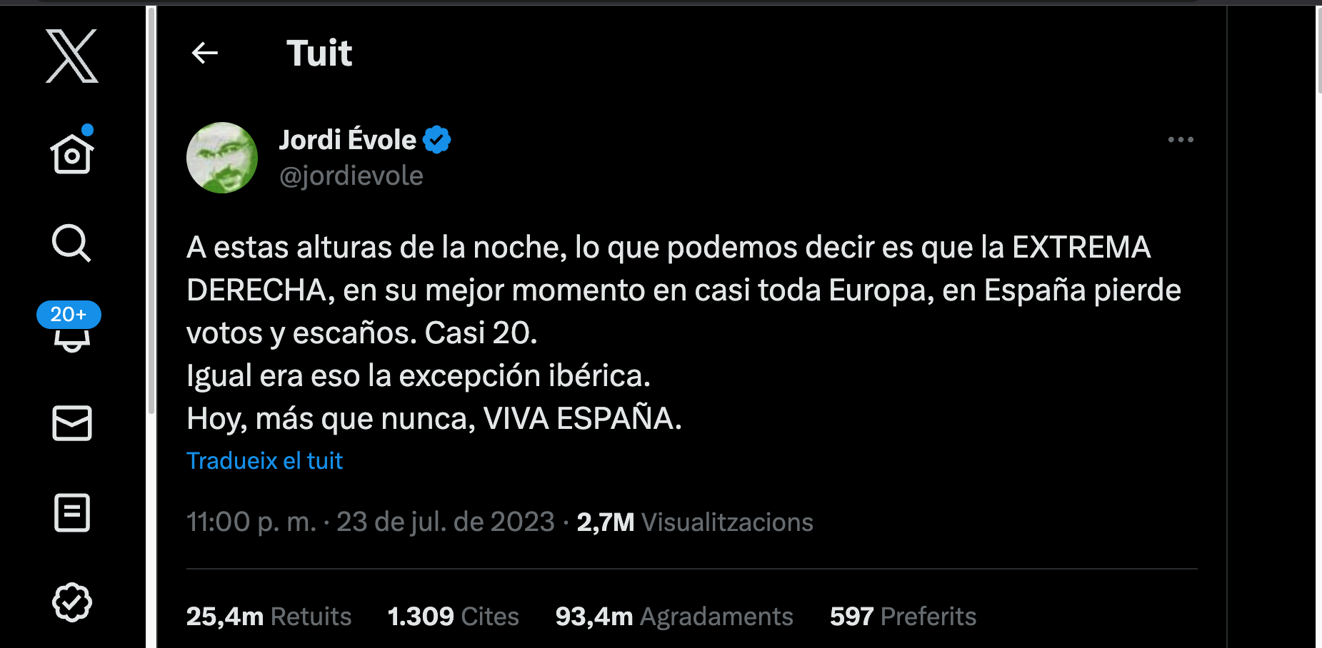 Referents de l'esquerra espanyola celebren el resultat electoral perquè el binomi PP i Vox no té majoria absoluta