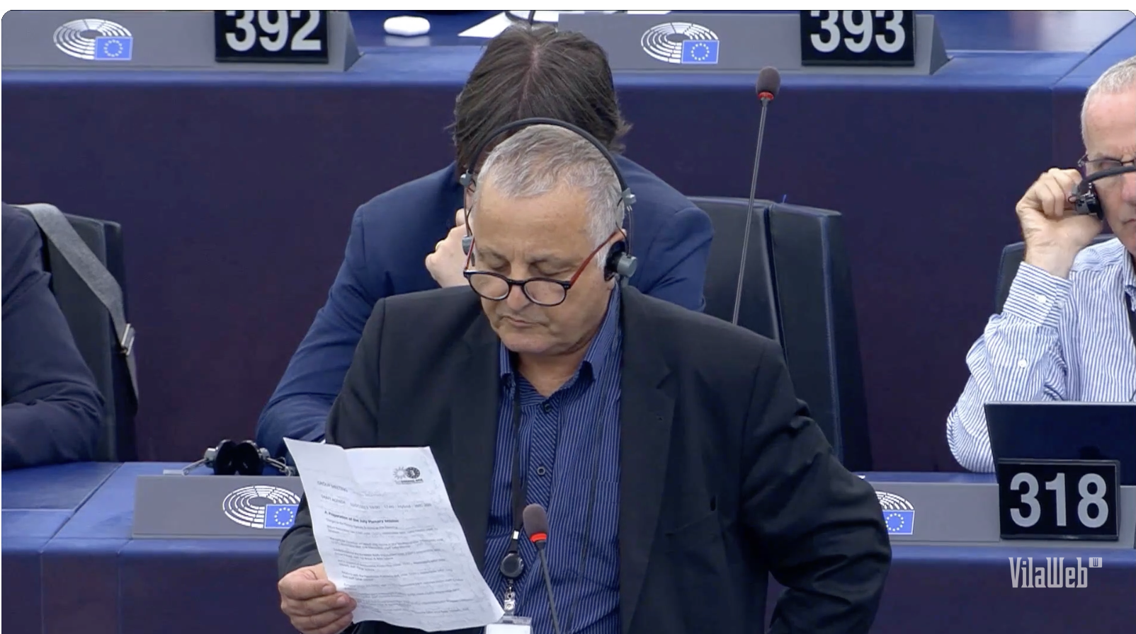 "La seva absència malmet la vida democràtica del parlament", diu l'eurodiputat cors François Alfonsi al començament de la sessió plenària