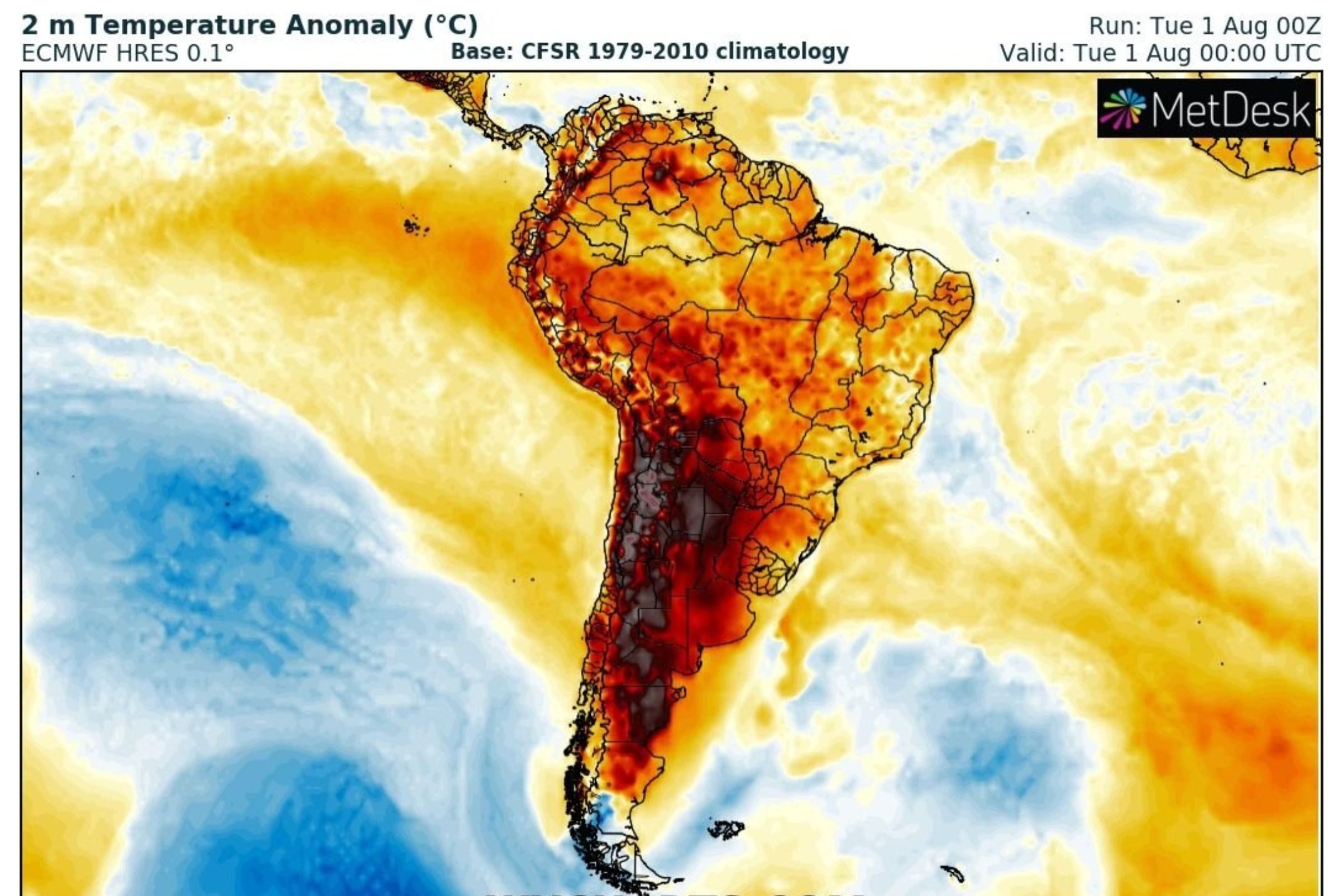 En alguns punts de Xile, els registres han superat de més de 20°C la mitjana de temperatures aquesta època de l'any