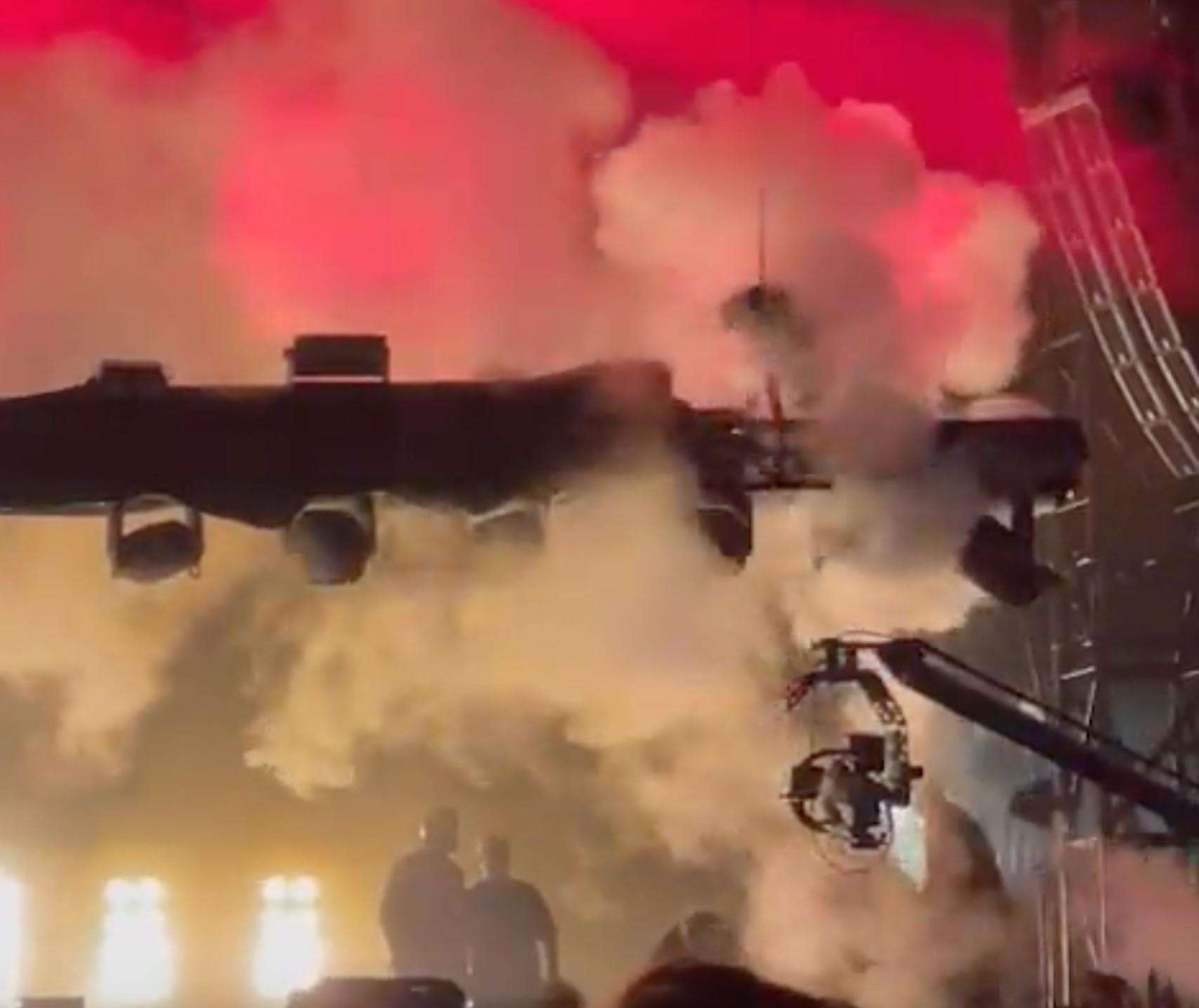 Una tela que protegia els focus de la pluja es va encendre · L'organització va poder controlar les flames i tot plegat no va passar d'un ensurt